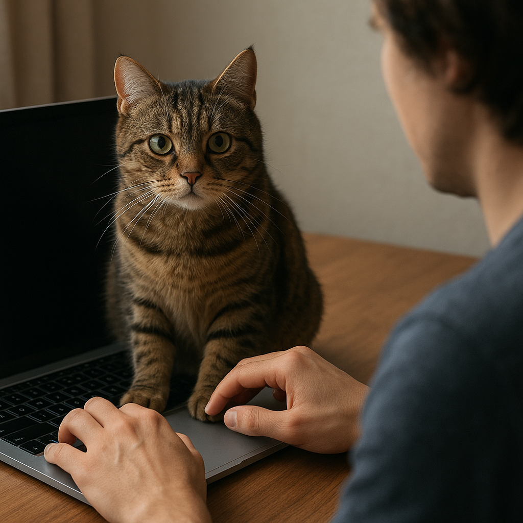 Z psychologicznego punktu widzenia można postrzegać te sytuacje jako formę negocjacji. Kot, korzystając z faktu, że jesteś w pełni skoncentrowany na ekranie, dąży do zainicjowania interakcji. Potrzebuje Twojej uwagi i eksperymentuje z różnymi strategiami: ciche podkradanie, donośne miauczenie, siadanie na przedmiotach. W rzeczywistości to po prostu jego sposób na powiedzenie: „Pamiętasz o mnie?”.